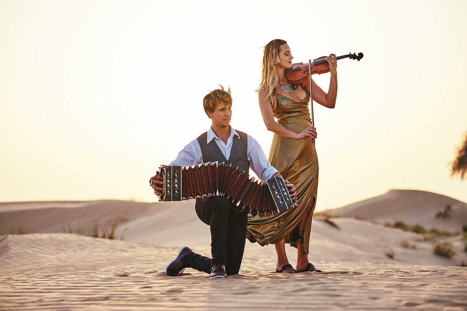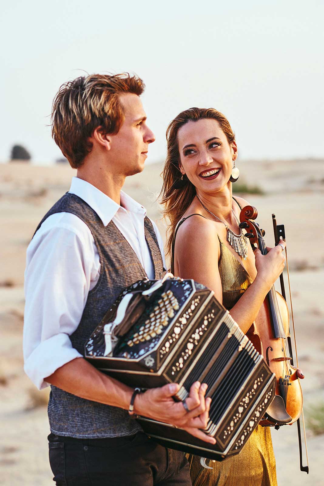 Born in Buenos Aires, Argentina. Begins to study piano at the age of 6, followed by the violin at the age of 8. She obtains her degree at the “Universidad Nacional de Arte” in Buenos Aires as well as at the Santa Cecilia Conservatory in Rome. She has earned numerous scholarships for chamber music training. She has completed several Master Classes to perfect both piano and violin. She has participated in multiple festivals, realizing concerts and tours in a number of countries not only with orchestras and groups but also as a soloist, whether it be classical, tango, pop or rock music; participating, also, on television programs. Currently she’s continuing as a concert violinist, working on her project, “Duo Sonder,” which promotes argentine music. She’s a teacher and collaborates with various and diverse musical and theatrical projects.